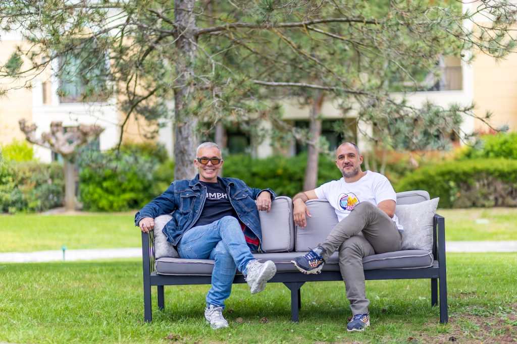 Εκατσε στο παγκάκι στους κήπους του Hyatt Regency Thessaloniki. Μία το μεσημέρι, Πέμπτη 17 Απριλίου 2025. Μέρα ηλιόλουστη, τα πουλιά