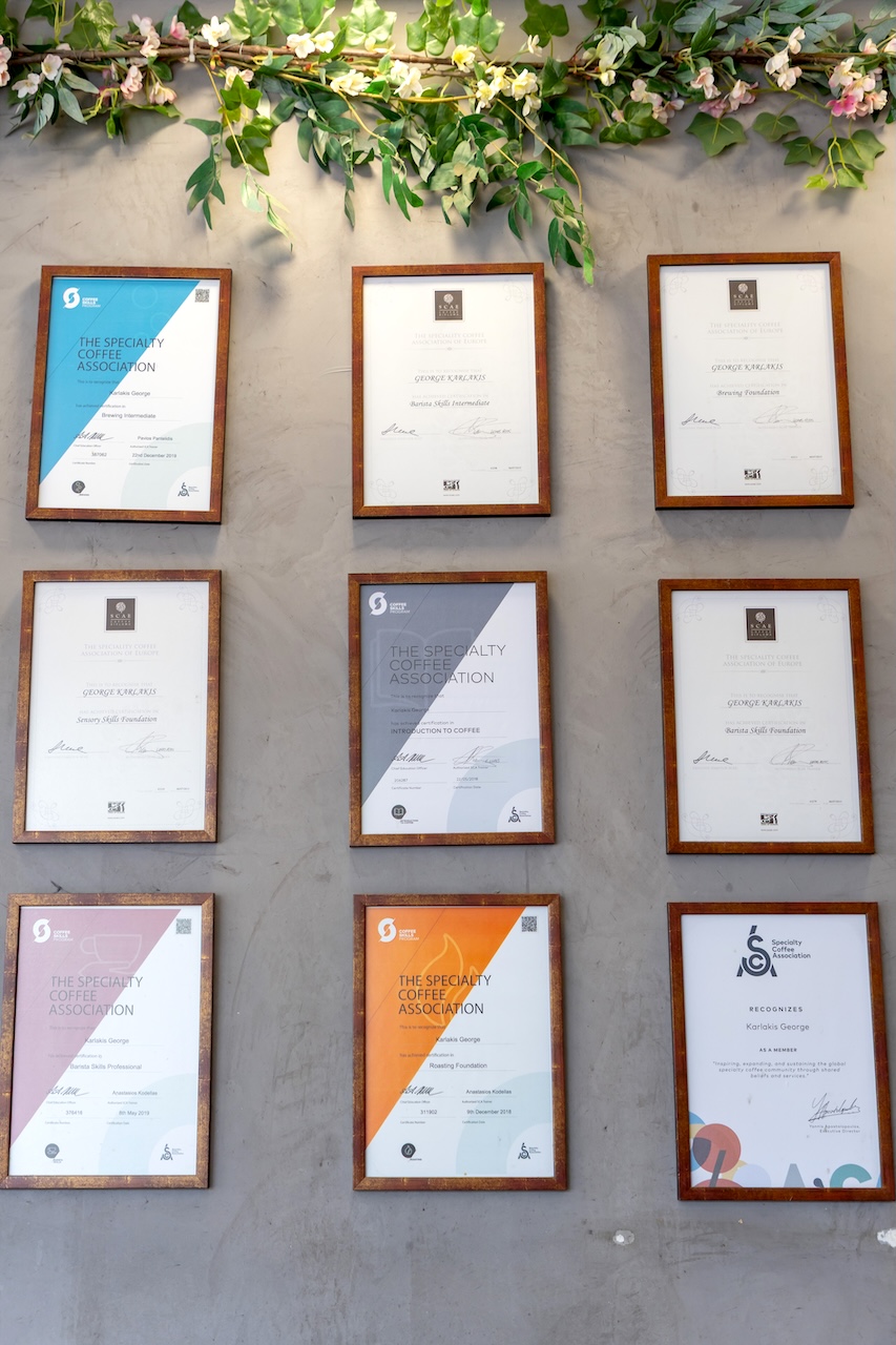 Ήταν τότε που ο Γιώργος, από τη συμμετοχή του σε διαγωνισμούς Latte Art και Cupping, βρέθηκε να παρακολουθεί σεμινάρια στο Barista Academy στην Αθήνα, όπου γρήγορα έγινε και εισηγητής. Παράλληλα, ολοκλήρωσε τον κύκλο σεμιναρίων Coffee Diploma της Specialty Coffee Association (SCA). Για περίπου μία εξαετία δούλεψε σε έναν από τους μεγαλύτερους ομίλους εστίασης της πρωτεύουσας, περνώντας από πολλές θέσεις ευθύνης. Το 2019, ύστερα από ένα μικρό πέρασμα από την Καβάλα, επέστρεψε στη γενέτειρά του. Αξιοποιώντας την πολύτιμη εμπειρία του και τις γνώσεις του στον καφέ, άνοιξε το δικό του roastery και έναν χρόνο αργότερα το πρώτο του μαγαζί στη Δράμα.